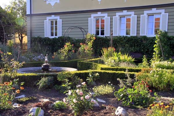 Garten der Pfarrei St. Johann. Von Vereinsmitgliedern des ortsansässigen Obst- und Gartenbauvereins in liebevoller Weise gepflegt.