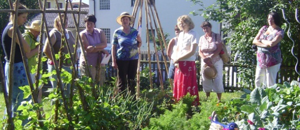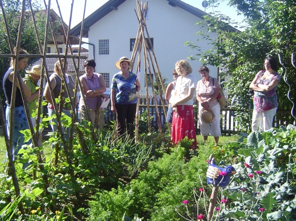 In diesem privaten Nutzgarten einer Gartenbäuerin kommen Gemüse, Beerenobst, Kräuter und Ziergewächse bestens miteinander aus. Der teilweise in Hanglage angelegte Garten ist nicht streng in Zier- und Nutzgarten aufgeteilt. Das kann man bei themenbezogenen Gartenführungen mit allen Sinnen erleben.